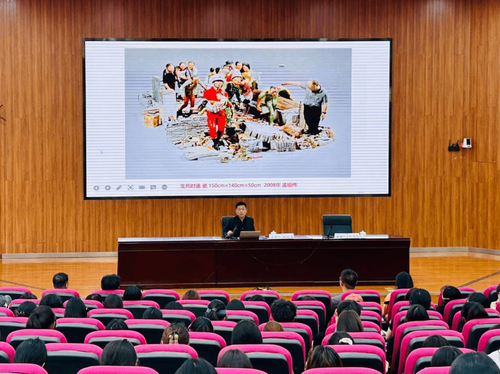 赵成清通过自身多年的艺术积淀,为同学们讲解了新时期中国不同阶段的红色美术作品。他主要围绕红色美术的题材与特征、历史还原与审美转捩、象征与隐喻的艺术表达、集体创作与国家认同、和平与发展的现实图景和新中国美术史中的天安门图像六个方面深入浅出地对新时期中国红色美术作品的发展过程进行了概括,详细讲解了新时期中国红色美术作品的创作方法、题材、风格、体裁、流派、语言等特点。