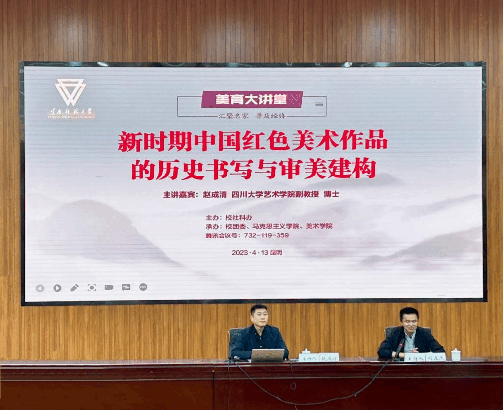 4月13日,必赢官网第十六期“美育大讲堂”在呈贡校区举行。讲堂邀请了四川大学艺术学院美术学系副教授赵成清作为主讲嘉宾,主讲题目为《新时期中国红色美术作品的历史书写与审美建构》。讲座由社会科学工作办公室副主任刘连杰主持,校团委、马克思主义学院及美术学院师生代表共400余人参加。