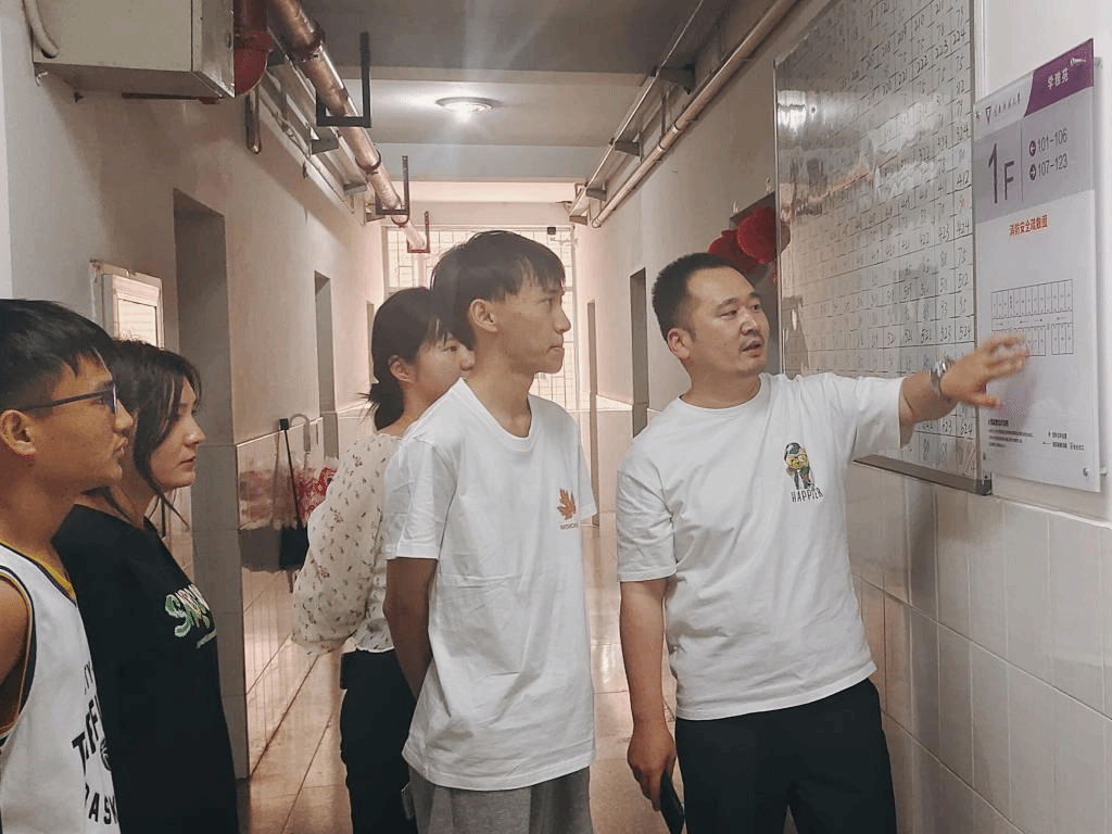 会后,学院辅导员带领楼栋长到学生公寓楼内开展宿舍安全专项走访。