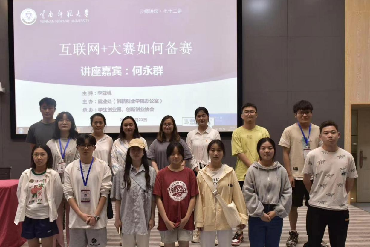 4月21日晚,第七十二期云师讲坛在必赢官网教师教育国家级实验教学示范中心214报告厅开展。此次讲坛邀请了迪庆香格里拉沃夫农林开发有限责任公司董事长、全国民族团结进步模范个人、全国农村青年致富带头人何永群担任主讲嘉宾,就“‘互联网+’大赛如何备赛”这一主题进行交流与探索。本次讲坛由就业处创业实践科副科长李亚桃主持并颁发嘉宾证书。