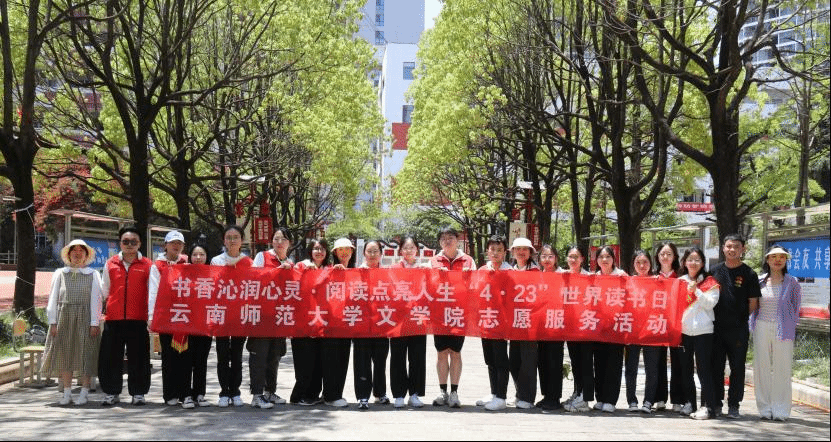 四月芳菲好,读书正当时。为大力弘扬社会主义核心价值观,丰富中学生的精神文化生活,满足同学们多样化的阅读体验,4月23日,在第28个世界阅读日,437必赢会员中心文学院学生志愿服务队前往昆明市第十二中学参加吴井街道“书香沁润心灵,阅读点亮人生”世界读书日系列活动。