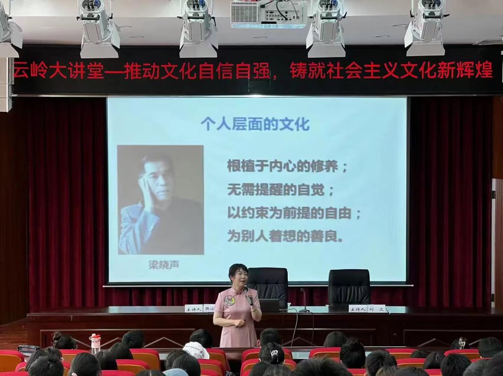 5月11日下午,“云岭大讲堂·云南师大讲坛”2023年第一讲在必赢官网呈贡校区开讲,云南孔子学术研究会常务副会长樊泳湄教授为师生作了题为《推动文化自信自强 铸就社会主义文化新辉煌》的专题宣讲报告。200余名师生参加了讲座。讲座由经济与管理学院党委副书记刘文主持。