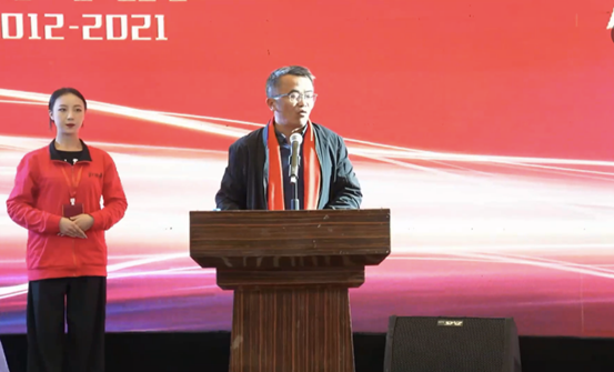 舞蹈表演专业负责人郭腾杰老师表达了对所有学生的感谢,细数了专业人才培养的往日点点滴滴。他以现场点到的方式,请来到现场的历届毕业生到舞池中央,向所有来到现场和在观看直播的老师鞠躬致敬。