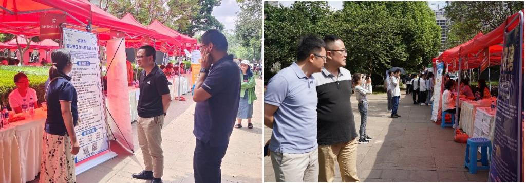 生命科学学院、化学化工学院、马克思主义学院领导班子成员到招聘会现场与用人单位和毕业生亲切交谈,了解招聘会岗位需求、毕业生求职意愿和签约情况,积极深化桥梁沟通作用。