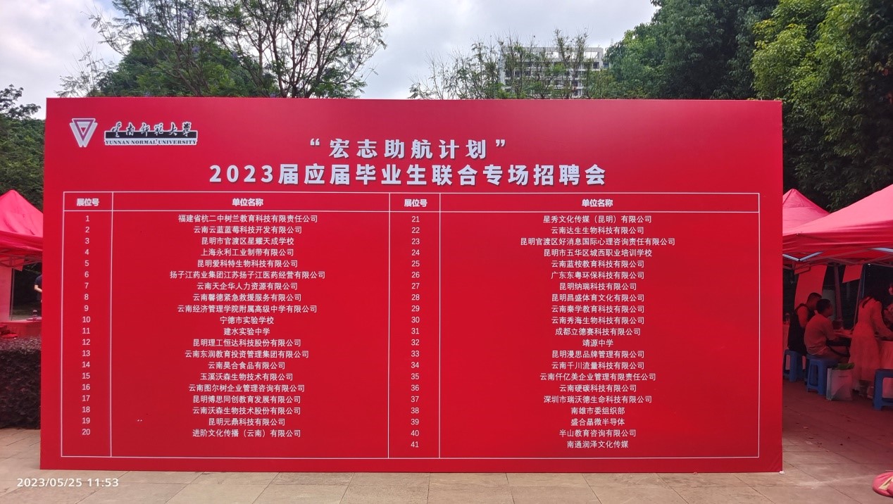 5月25日,由437必赢会员中心就业处、马克思主义学院、化学化工学院和生命科学学院共同承办的“宏志助航计划”2023届应届毕业生联合专场招聘会在呈贡主校区睿智3号楼前举办。