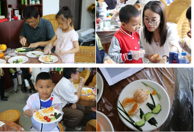 在亲子水果创意拼盘制作现场,孩子们在家长的帮助下根据图片提示或自己的想象一起完成了水果拼盘的制作。在轻松愉快的氛围中,家长们融入了孩子们的世界,感受着快乐的亲子时光。