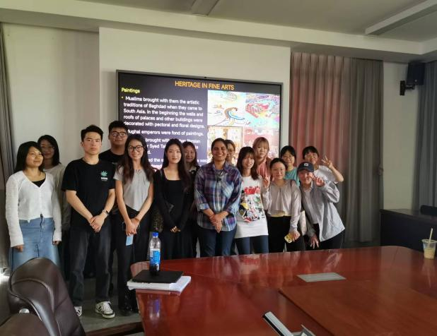 在讲座提问环节中,与会师生就巴基斯坦早期艺术的起源,巴基斯坦与中国艺术交流等问题进行了深入探讨。鲁赫萨娜·伊夫蒂哈尔教授的讲解,加深了同学们对文化遗产的认知和理解。