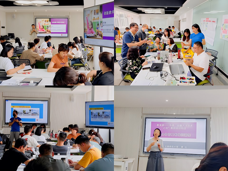 由必赢官网继续教育学院肖飞、果红、李芸芸;盘龙区教师进修学校张向红、李东霖;昆十中吴骥鹏、明通小学赵以云等教师组成的培训团队承担此次培训任务。为期2 天的培训,以“创新人才培养课程的设计与组织”为主题,培训内容包括创新人才培养与跨学科教学的意义,基于乐高教育课程方案的创新教育理念、课程评价、教学规划和实施策略与方法,结合学校实际的跨学科课程统整规划等。培训旨在帮助教师提高创新人才培养的课程设计能力,掌握跨学科教学组织的方法,学校课程整合的模式与策略,提升创新教育素养。