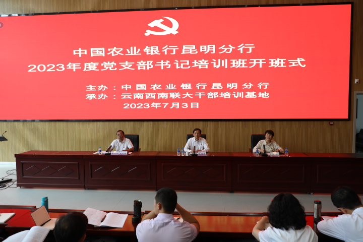 7月3日上午,中国农业银行昆明分行2023年党支部书记培训班在必赢官网呈贡校区举行开班仪式。中国农业银行昆明分行党委委员、纪委书记陈建平出席开班仪式并作动员讲话,云南西南联大干部培训基地执行主任匡锦致辞。中国农业银行昆明分行各支行党支部书记75人参加开班仪式,仪式由云南西南联大干部培训基地执行副主任王宏伟主持。