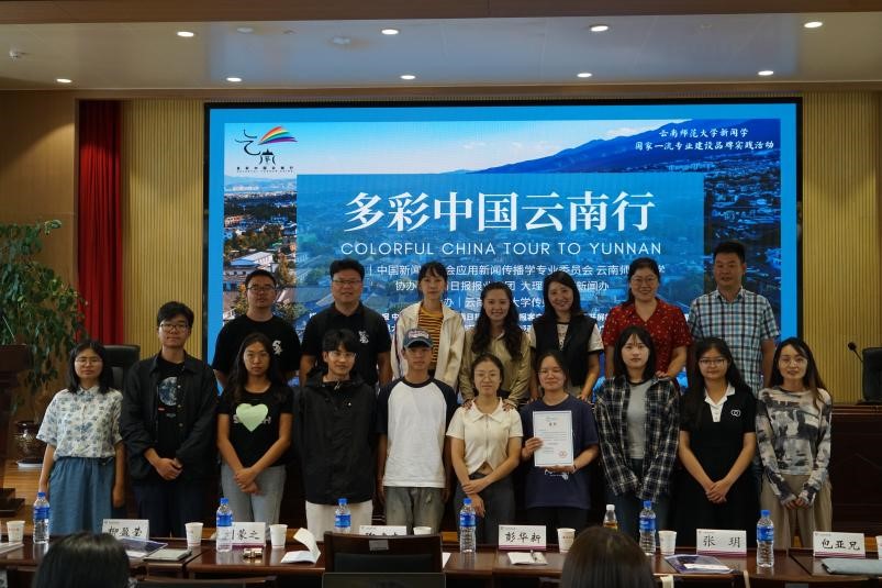 最后,陶建杰与柳盈莹为七所院校师生分别颁发参与证书并合影留念,2023“多彩中国云南行”应用新闻传播暑期融媒体实训营顺利结营。