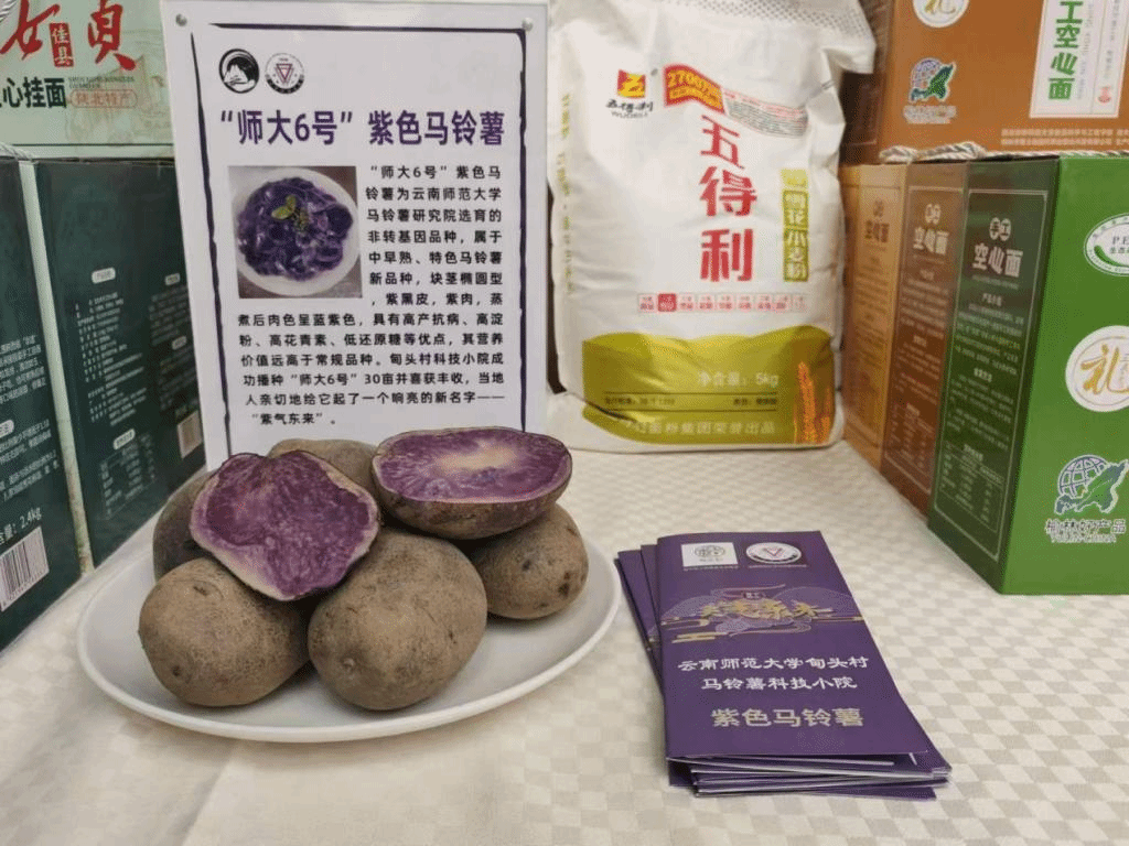 9月23日至9月27日,必赢官网马铃薯科学研究院、晋宁区甸头村马铃薯科技小院携特色产品“师大6号”紫色马铃薯参加了科技部机关服务中心举办的“滇韵京秋”美食节活动。“师大6号”是由马铃薯科学研究院研发培育的特色品种,这款马铃薯表皮和薯肉呈现紫色,富含花青素等多种营养成分,味道香甜且具有较高的营养价值和保健功能。