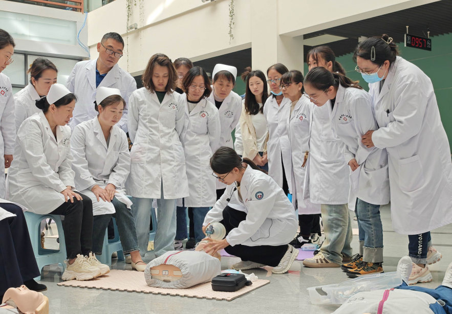 培训中,昆明医科大学第一附属医院急诊科医生张杰和刘晓雪围绕心肺复苏的概念、操作要点、心脏骤停的临床表现与诊断、心肺复苏的急救步骤以及电除颤的操作流程等方面,进行了全面而专业的知识讲解和示范。
