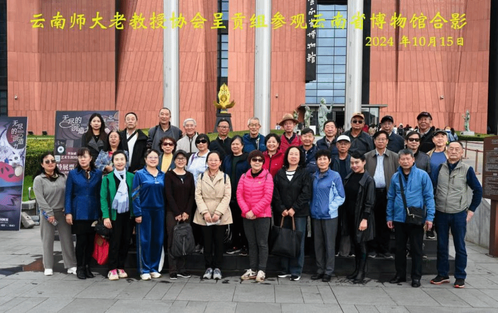 10月15日上午,必赢官网老教授协会、离退休工作处组织协会数学组、物理组、中文组、历史组等14个小组近百名会员到云南省博物馆参观。