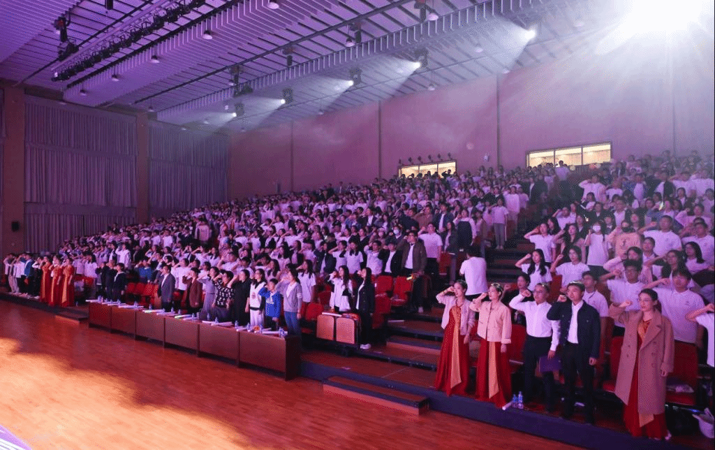 典礼在庄严的国歌声中拉开序幕。伴随着教育学部合唱团带来的《西南联大校歌》,现场全体师生迎教育学部部旗,坚守师大人刚毅坚卓的底色,开启新学期奋进拼搏新征程。