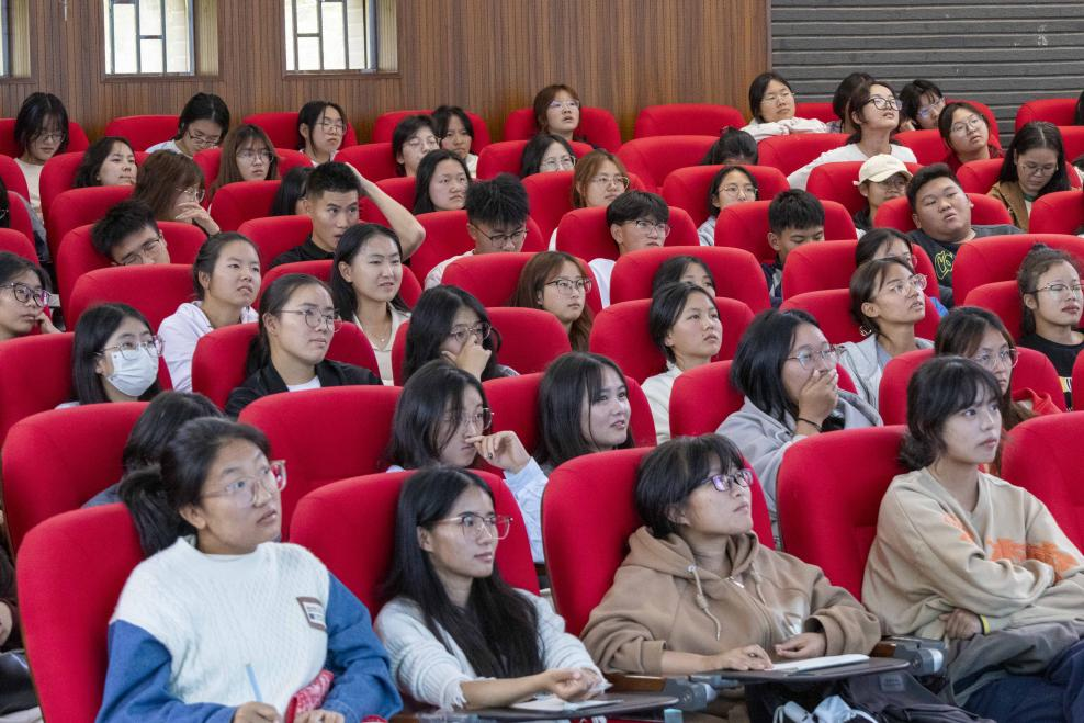 倪辉以“为什么被骗的会是我”引入主题,警醒同学们避免因缺乏反诈相关知识和心存侥幸而遭受财产损失。他不仅直观地向同学们展示了兼职刷单等诈骗高发诱因,结合具体案例展示了诈骗的频发以及诈骗手段的多样,并且向大家展示了吴家营派出所以及他本人的联系方式,为大家提供了在遇到可疑情形时寻求帮助最直接的渠道。同时,他还向在座的同学们科普了在诈骗情形中容易被忽略的帮信罪,告诫大家切勿沦为犯罪“工具人”。