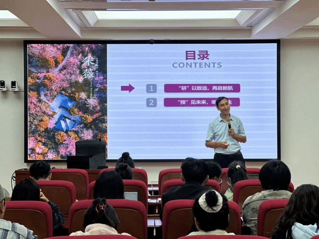 牛元帅从个人升学经历分析学历竞争力变化,让同学们认识在当前形势下升学的重要性,并对近年来学校和学院的考研数据进行分析,鼓励同学们积极报考。