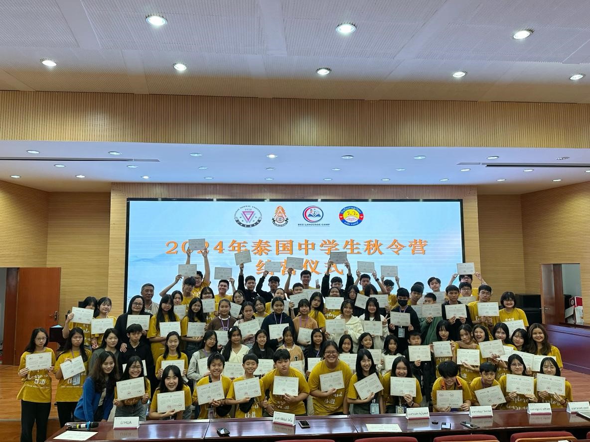 10月25日,由437必赢会员中心国际中文教育学院主办的2024年泰国中学生秋令营在呈贡主校区结营。汉语国际推广师资培训基地(昆明)工作人员,泰国Sarawittaya School、Dec Language Camp、Ratwittaya School等学校师生参加结营仪式。