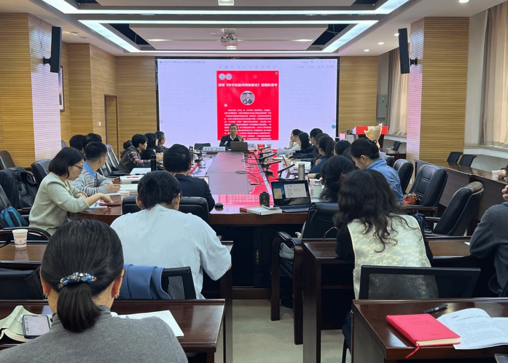 为深入学习贯彻习近平总书记关于加强和改进民族工作的重要思想,深入贯彻落实党的二十届三中全会精神和全国教育大会精神,用好统编教材,培养优秀师资,有形有感有效推进铸牢中华民族共同体意识教育,马克思主义学院于10月17日举行《中华民族共同体概论》课程集体备课会。备课会邀请云南大学特聘教授,中国少数民族史专业博士生导师,中央“马克思主义理论研究和建设工程”首席专家,中共云南省委联系专家王文光教授主讲。学校党委统战部部长吴雁江、马克思主义学院副院长张悦、庞申伟,《中华民族共同体概论》课教研室全体教师参加了备课会。