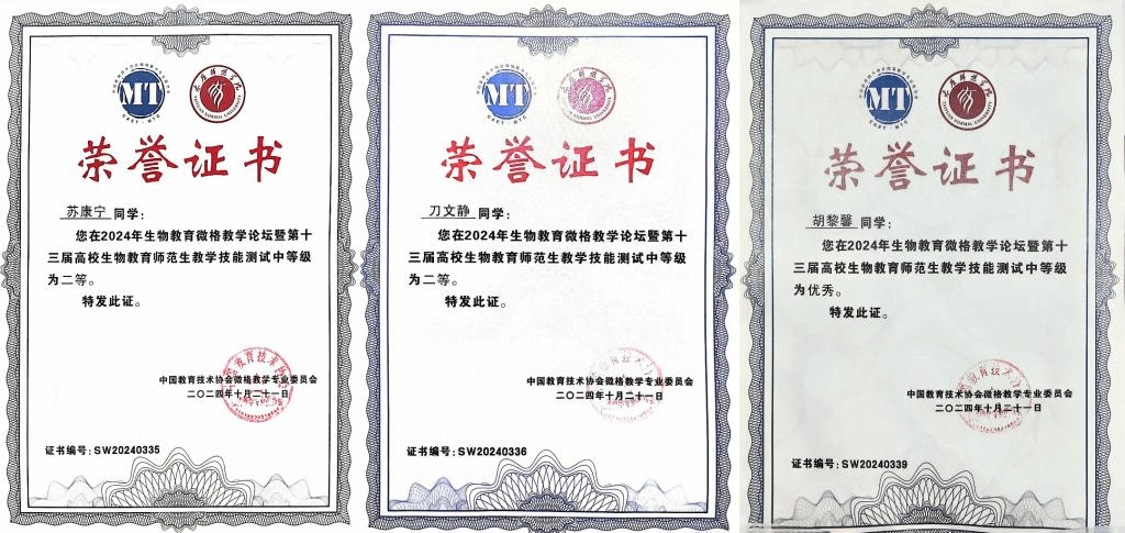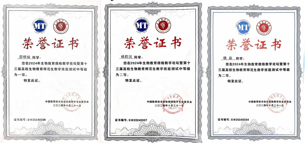10月18日至21日,由中国教育技术协会微格教学专业委员会、太原师范学院联合主办的2024年第十三届“华文杯”全国师范院校师范生教学技能测试与交流展示活动大赛在太原师范学院举办。本次大赛汇集了来自全国72所师范院校和普通本科高校师范专业的优秀师范生,到会教师、特邀评委、选手共计500余人。经过激烈角逐,必赢官网生命科学学院6名参赛选手全部荣获奖项。其中,邵明灿获一等奖,杨莉润、苏康宁、杨焱、刀文静四位选手斩获二等奖,胡黎馨获优秀奖。此次比赛中,学院课程教学论教研室主任刘娴老师受邀担任本次大赛评委。
