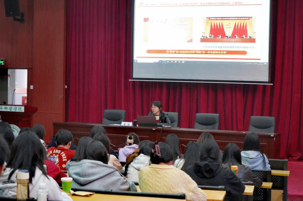 李薇为学员们作了题为《深入学习贯彻党的二十届三中全会精神》专题讲座。她带领同学们回顾了改革开放这一坚持和发展中国特色社会主义的必由之路,系统阐释了党的二十届三中全会的里程碑意义,并号召同学们学习贯彻好党的二十届三中全会精神,坚定理想信念,勇担时代大任,争做新时代坚定的青年马克思主义者。
