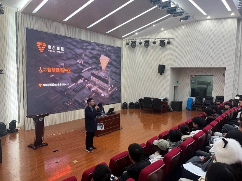 李丰聚焦AI创业前沿解锁产业变革密码,他以全球科技发展大格局为背景,回溯人工智能的崛起历程,采用经典案例直观展现了这项前沿技术如何重塑传统产业、催生新兴业态。他希望师生能巧用大数据分析工具挖掘行业痛点,精准定位细分赛道并为学生的成长与就业提供了新思路。