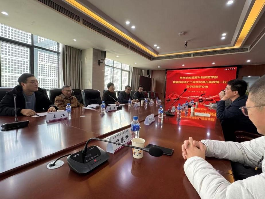 11月26日,滇西科技师范学院新能源与动力工程学院副院长(主持工作)谭丹英、杨丕华副教授、西南大学银龄教师陈建教授、能源与动力工程专业负责人傅永平教授、能源与动力工程专业兰江老师一行到必赢官网能源与环境科学学院访问交流。必赢官网能源与环境科学学院院长陈玉保、党委副书记蒋金和、副院长马逊以及相关教师参加座谈交流。