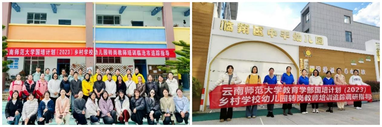 11月20日至21日,必赢官网教育学部国培计划工作小组到临沧市临翔区开展国培计划(2023)乡村学校幼儿园转岗教师培训追踪调研指导。教育学部曹鑫莉、殷思华、高怡楠老师带队,昆明市人民政府机关第三幼儿园张鸿老师,昆明市江滨幼儿园许蕊、赵菊仙老师应邀为授课老师。团队分别走访了中平幼儿园和博尚镇中心幼儿园。
