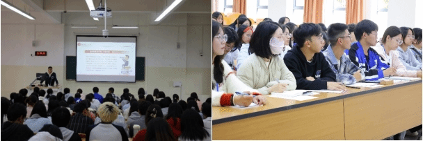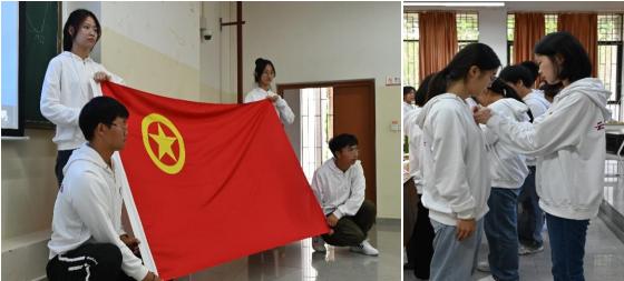 11月21日,郭起凤老师以启发性问题为引导,围绕党的章程、入党流程、如何成为一名合格的共产党员三个角度进行讲解,引导学生理解党团关系。