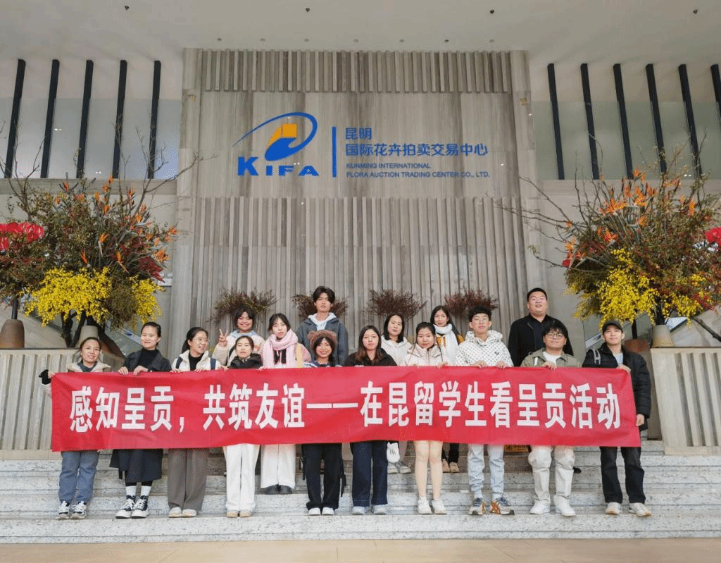 第二站,留学生们游览了斗南花卉市场,观赏了各类花卉,了解花卉种植技术与销售模式、斗南花卉市场的发展历程、产业规模及国际影响力,感受了呈贡区花卉产业的魅力。