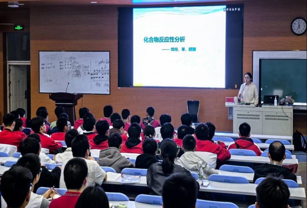 437必赢会员中心詹睿教授,在本次公益课堂讲授了《烯烃、芳香烃亲电取代》。詹睿教授在高中化学的基础上,层层递进,讲练结合展开讲解,课堂氛围融洽。