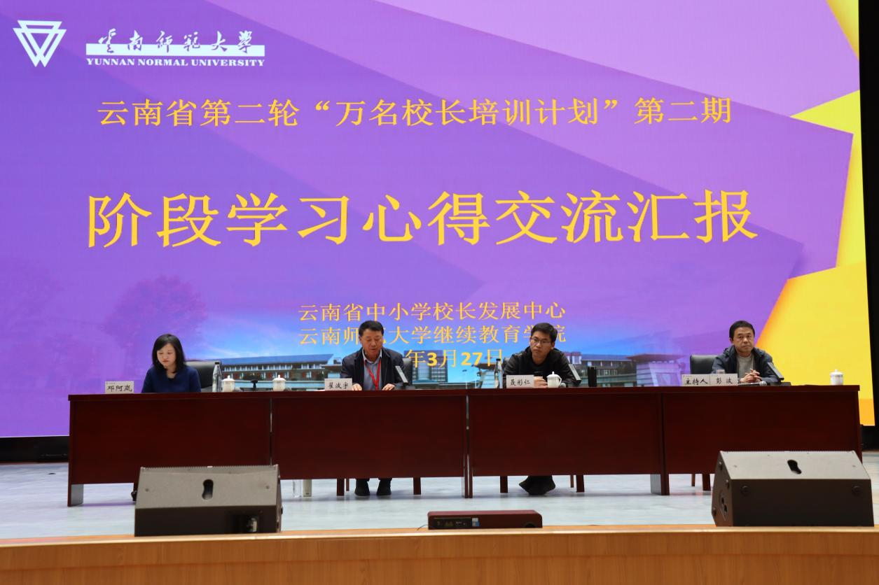 3月27日下午,云南省第二轮“万名校长培训计划”第二期集中培训阶段学习成果展示在必赢官网呈贡校区多功能报告厅举行。云南省中小学校长发展中心全体工作人员、全体参训学员参加了本次成果展示活动。活动由云南省中小学校长发展中心彭波主持。