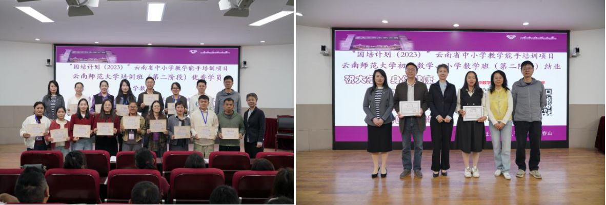 3月29日,最后一期“国培计划(2023)”——云南省中小学教学能手培训项目初中数学、小学数学(第二阶段)培训结业仪式在一二·一西南联大校区举行。继续教育学院项目管理团队,196名学员参加了结业仪式。仪式上两个学段的学员代表交流分享了本阶段的学习收获,表示返岗后将所学应用到教育教学实践中,并积极做好二次培训。继续教育学院副院长刘应兰勉励学员们今后要从持续学习、反思实践、与同行交流、需求支持及提升职业认同等方面去克服专业发展“再成长”过程中面临的思维固化、创新乏力等困难。结业仪式上颁发了优秀学员证书和培训结业证书。