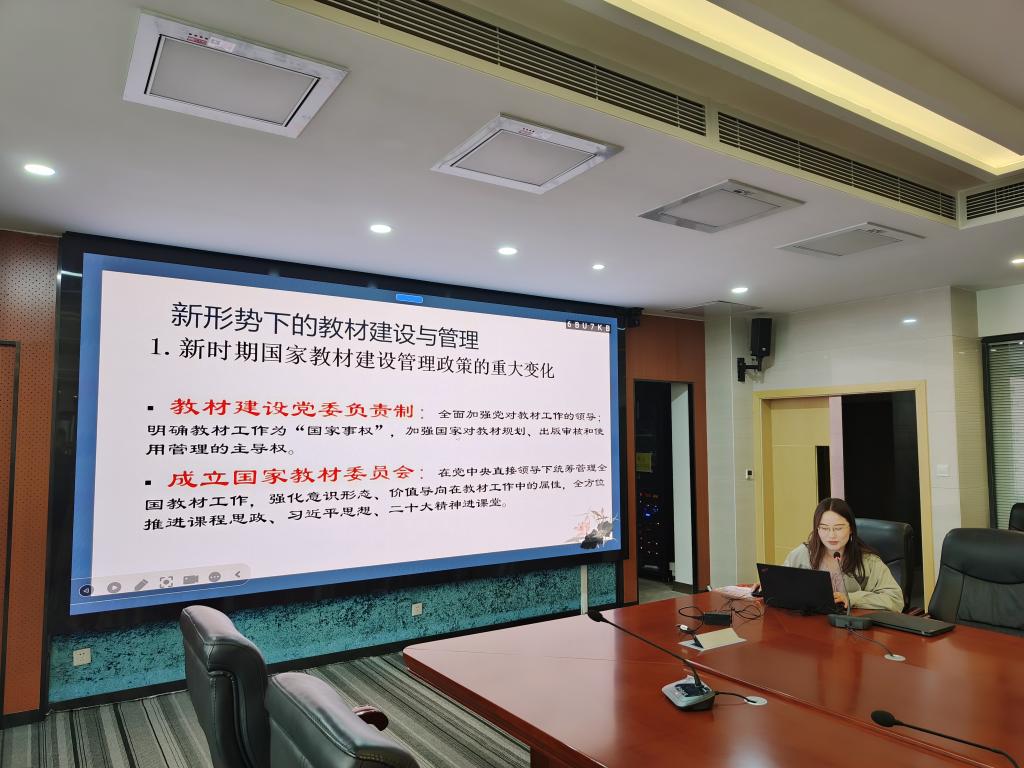 郭宇婧以“新形势下的教材建设与管理”为题作报告,深入解读了教材规划及相关政策,梳理了新形态教材的编写思路,提供了课程思政顶层设计的新视角。在新的教育形势下,教材建设应朝着数字化、立体化方向发展,以满足多样化的教学需求,培养学生的综合素养。