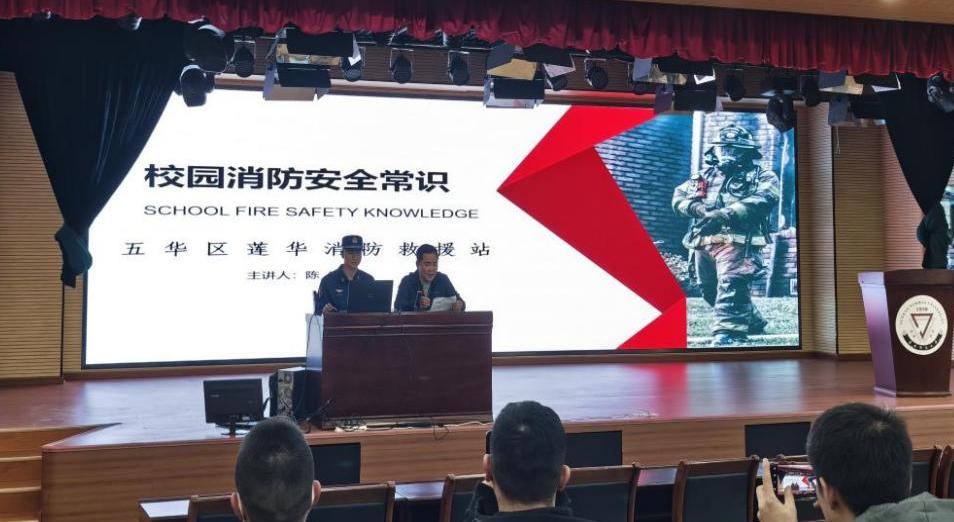 消防安全知识培训环节,消防员陈林通过分析近年来校园火灾的典型案例,阐述了火灾成因、预防措施、逃生技巧,强调了宿舍违规用电、实验室违规操作等校园常见的安全隐患及其防范要点。