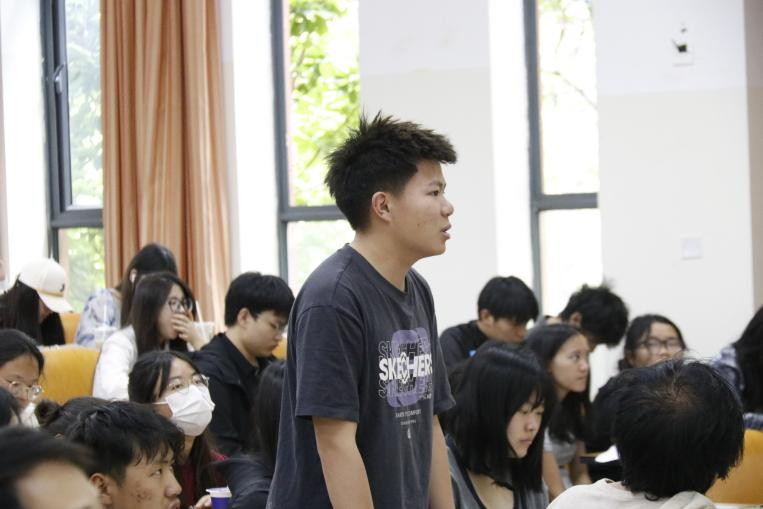段爱松与同学们分享了自己的创作经历,他认为文学创作的核心并非寻求标准答案,而是在多元视角中展现作者的思辨能力。讲座中,段老师引经据典,引用美国诗人华莱士·史蒂文斯的《观看一只黑鸟的十三种方式》,阐释了爵士乐即兴节奏与诗歌意象跳跃的内在呼应关系;用泰戈尔《飞鸟集》中“生如夏花之绚烂”的哲思,讲述了传统文化思想与现代诗学的融合之美;用《红楼梦》解读文学创作的核心要素。他认为,传统文化可以解构为“显性”与“隐性”双重维度,显性文化如唐诗宋词、非遗技艺是可见的文化载体,隐性文化如美德伦理、民族气质、人文思想则是内化的精神内涵。他鼓励文学院学子,要敢于尝试,将中华优秀传统文化融入文学创作之中,用文学的方式传承与发展中华优秀传统文化。