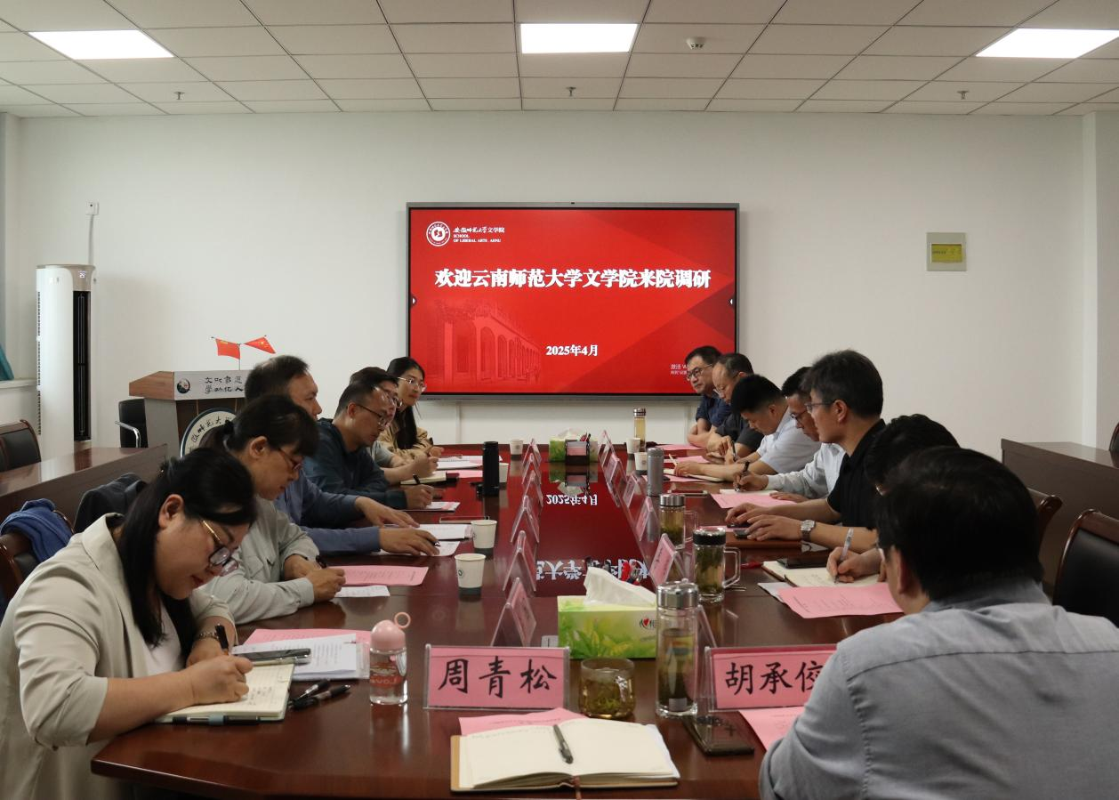 为学习借鉴兄弟院校先进经验,推动学院高质量发展,4月20日至22日,文学院院长阳清率队赴安徽师范大学文学院开展专题调研,文学院副院长徐俊六教授、中文系主任李瑛教授、中国现当代文学点长程小强教授、中文系副主任李园博士、学院办公室主任汪玉梅参与调研。双方围绕学科建设、专业发展、行政管理等议题展开交流,共同探讨中文学科发展的创新路径。