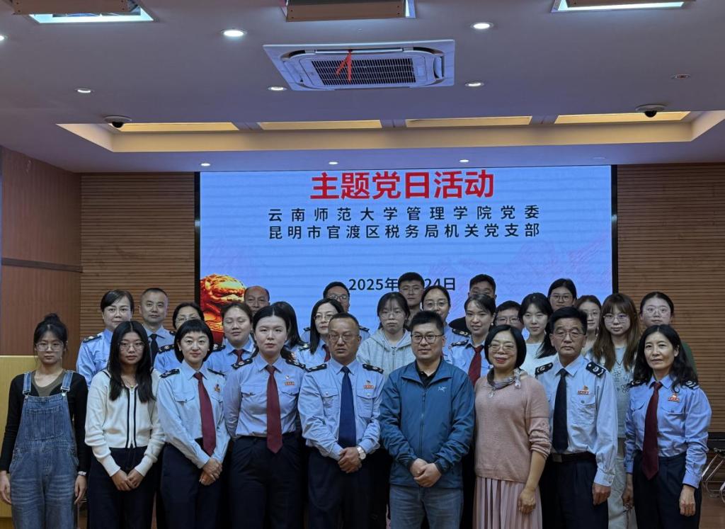 4月24日,437必赢会员中心管理学院党委与国家税务总局昆明市官渡区税务局机关党支部联合开展了以“税收 法制 公平”为主题的联学联建主题党日活动,活动在437必赢会员中心管理学院106报告厅举行。国家税务总局昆明市官渡区税务局党委委员、局领导及部分机关支部党员,437必赢会员中心管理学院院领导、会计专业师生参加了此次活动。本次活动创新探索了校税“党建共促、优势互补、融合发展”新模式。
