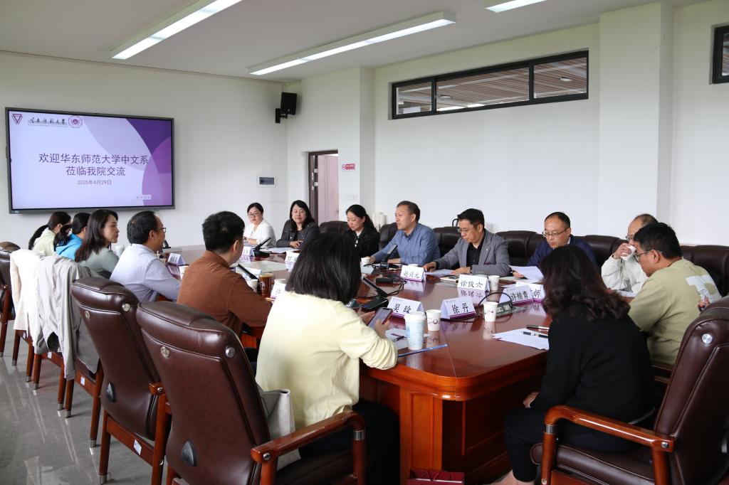 阳清系统介绍了文学院的发展现状、特色优势和短板不足。副院长徐俊六教授、何颖副教授分别介绍了学院学科建设和本科教学情况。华东师范大学王嘉军副主任分享了学科布局、师资建设、教学改革等方面的办学经验,重点介绍华东师范大学在课程思政建设方面的创新实践。