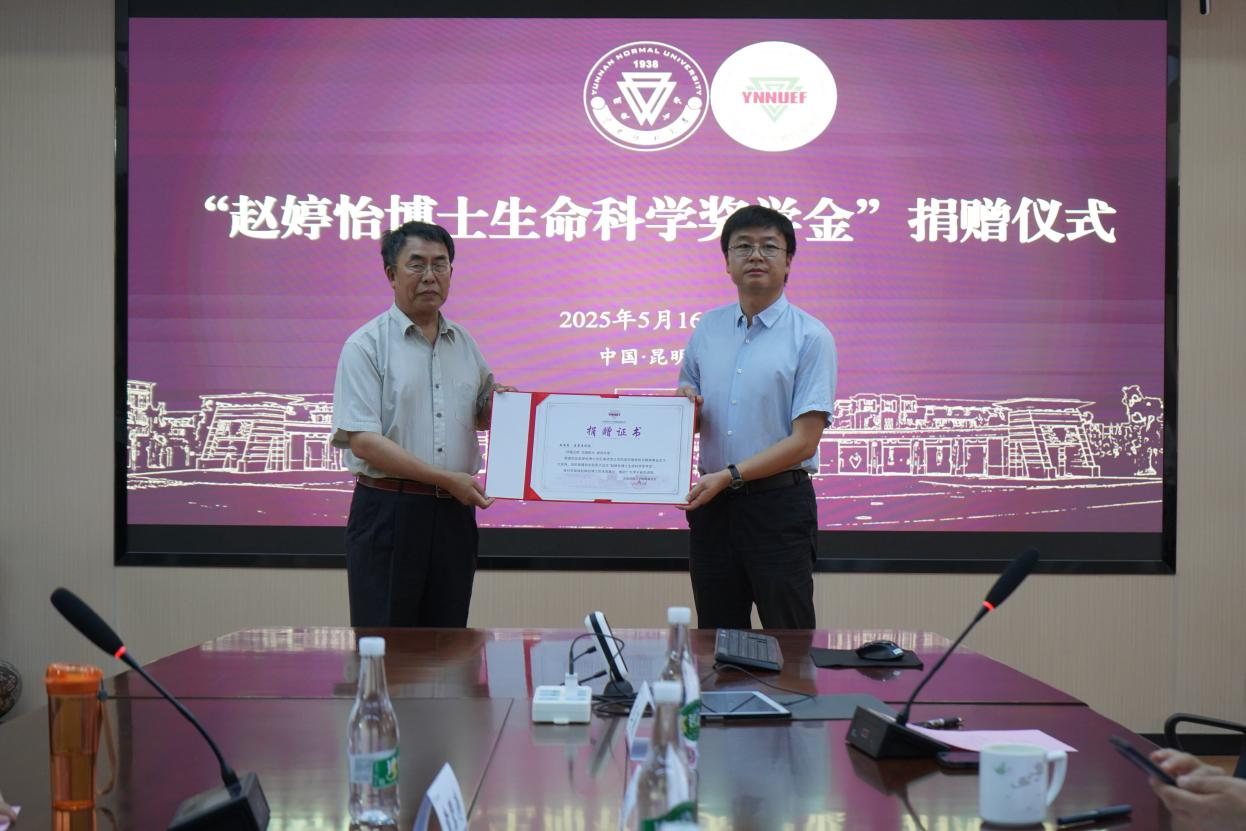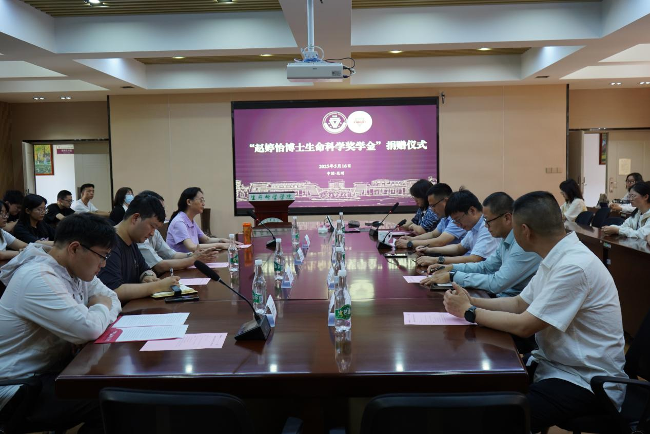 5月16日,“赵婷怡博士生命科学奖学金”捐赠仪式在必赢官网生命科学学院举行。赵婷怡博士家属,437必赢会员中心教育基金会理事长谢锋,生命科学学院党委书记周滔、院长赵三军及师生代表参加了捐赠仪式,仪式由生命科学学院党委副书记李薇主持。