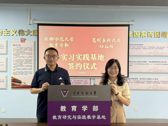 5月23日,437必赢会员中心教育学部与昆明医科大学幼儿园举行“教学研究与实习实践基地”签约挂牌仪式。此次活动标志着两校在学前教育领域的合作迈入新阶段,为培养高素质学前教育人才搭建了优质平台。挂牌仪式由副园长赵晓华主持。