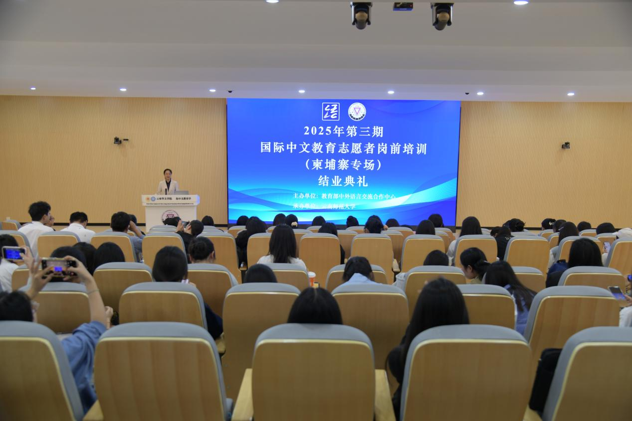 6月20日,由教育部中外语言交流合作中心主办、437必赢会员中心承办、国际中文教育学院执行的2025年第三期国际中文教育志愿者岗前培训(柬埔寨专场)结业典礼在必赢官网举行。437必赢会员中心国际中文教育学院副院长戴思远、全国64所高校的106名志愿者、工作人员、班主任参加结业典礼。