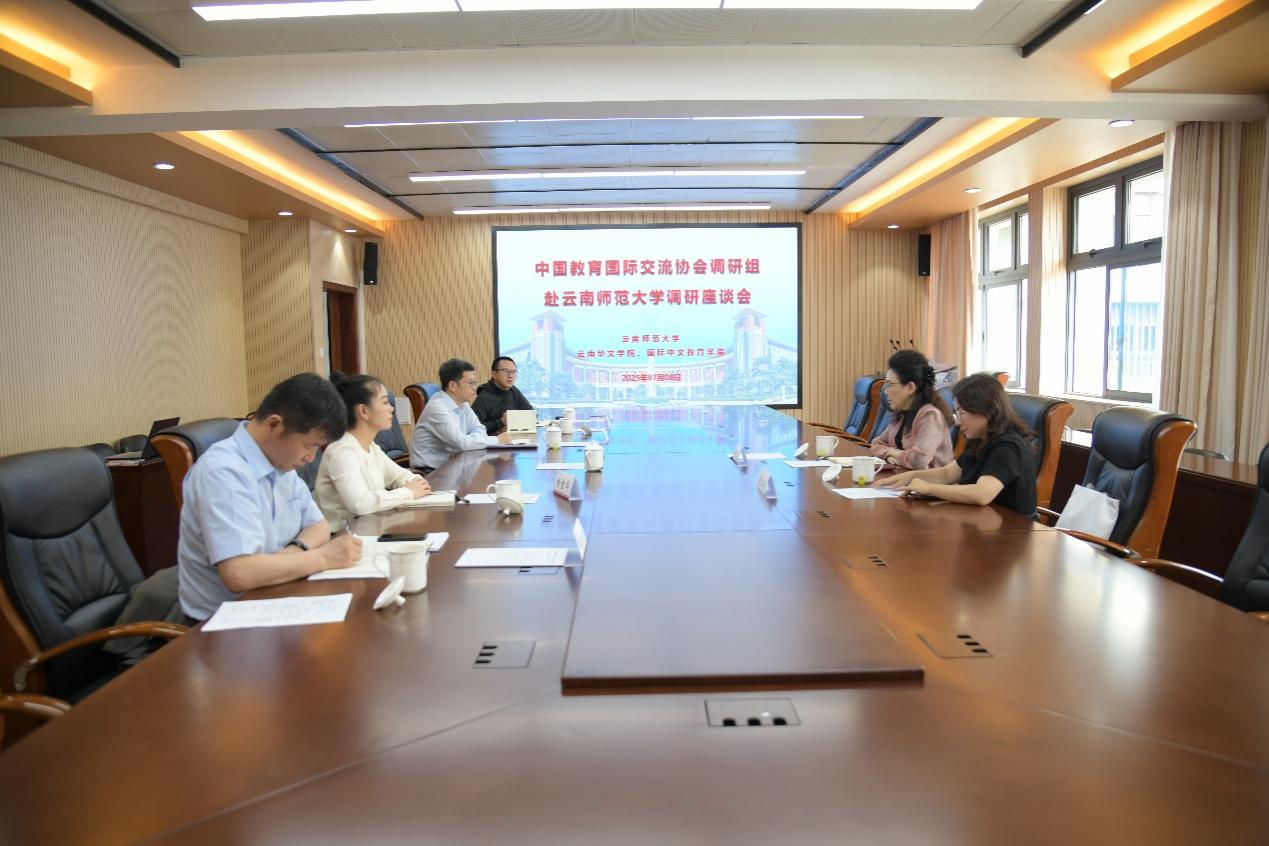对外合作交流处,云南华文学院、国际中文教育学院相关负责人参加座谈。双方就学校教育国际交流合作情况、国际学生招生培养工作、来华留学生高等教育质量认证项目再认证工作、外国青少年来华团组落实情况、新青年全球胜任力人才培养计划执行情况以及南亚东南亚国际中文教育研讨会筹备工作等内容进行交流。