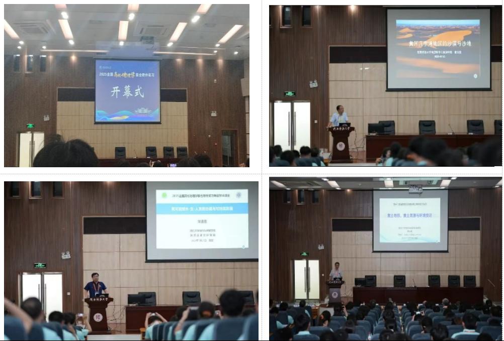 开幕式在陕西师范大学举行,教育部地理科学类教指委副主任鹿化煜教授等嘉宾致辞。活动围绕“黄土堆积与环境变迁”“黄河几字弯沙漠与沙地”“黄河流域水-生-人系统协调与可持续发展”等作专题报告,帮助同学们在区域典型场景中深化对自然地理过程与人地关系的系统认知。