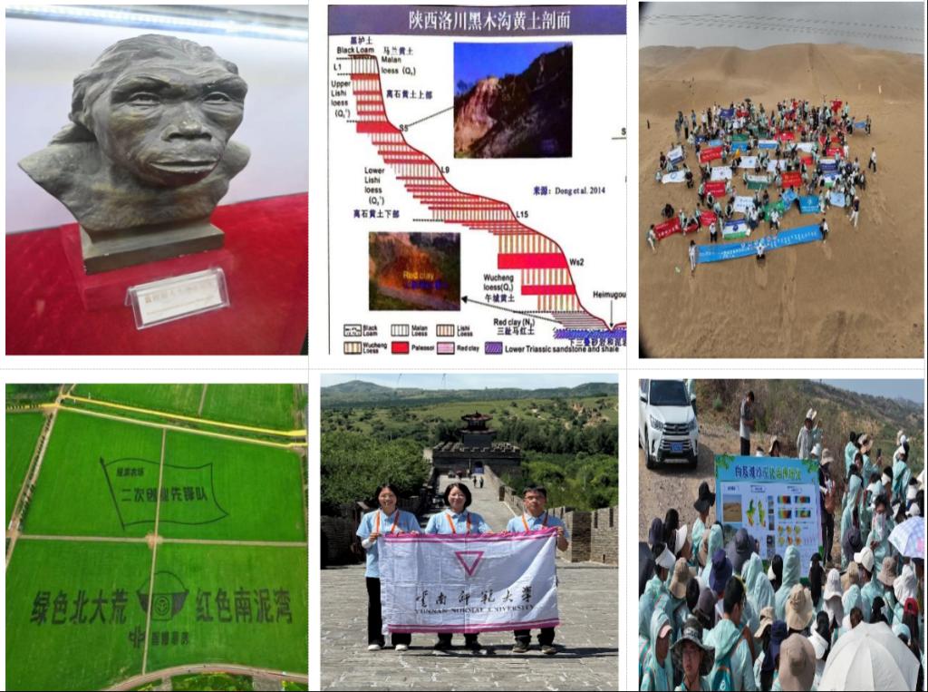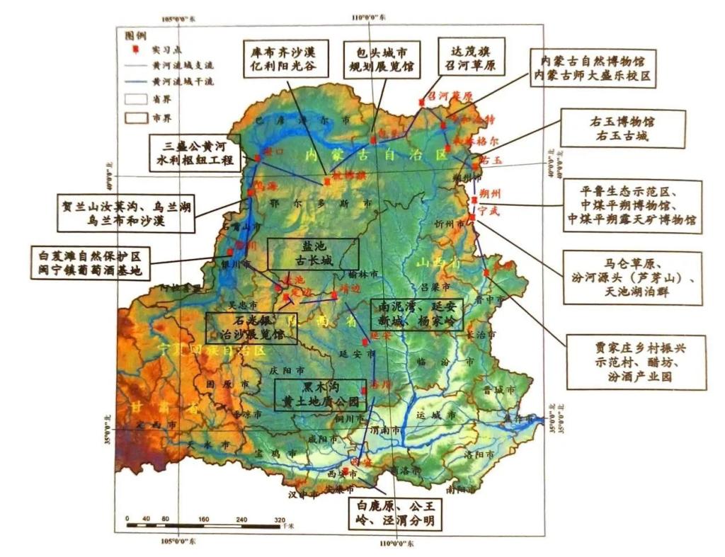 实习途中,师生结合“看-测-问-记-思-表”实践方法,开展跨区域综合考察:在陕西,通过蓝田猿人遗址、灞河阶地、泾渭分明与洛川黄土国家地质公园等点位,系统认识黄土堆积、阶地发育与水沙过程;在延安新城与南泥湾,同步讨论大规模地貌改造与生态修复的协同关系;在宁夏,队伍沿古长城廊道与白芨滩自然保护区考察防沙治沙工程体系,走进闽宁镇开展生态移民与乡村振兴调研,体悟系统治理与区域协作的实践路径;在内蒙古,围绕“乌兰布-三盛公枢纽-库布齐-包头都市圈-召河草原”综合线路,师生从沙漠治理、黄河水利、工业城市转型与草原生态水文观测等维度开展综合学习与科普实践,并在内蒙古师范大学举行专题报告交流;在山西,团队走进右玉生态修复实践与汾河源区综合治理现场,考察天池湖泊群与马仑草原等典型样地,围绕高寒草甸、冻土地貌与流域综合治理展开讨论。