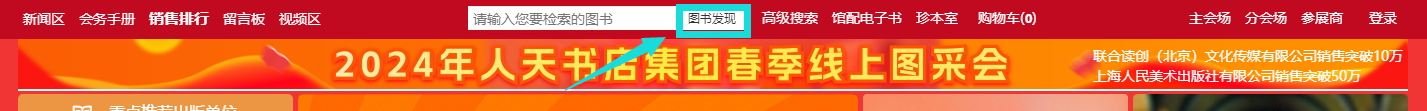 1. 主会场:其右上角展示图书采会开幕式领导讲话及平台消息发布。其他板块主要展示重点出版社书目,直接点击出版社名称即可进入选书界面。