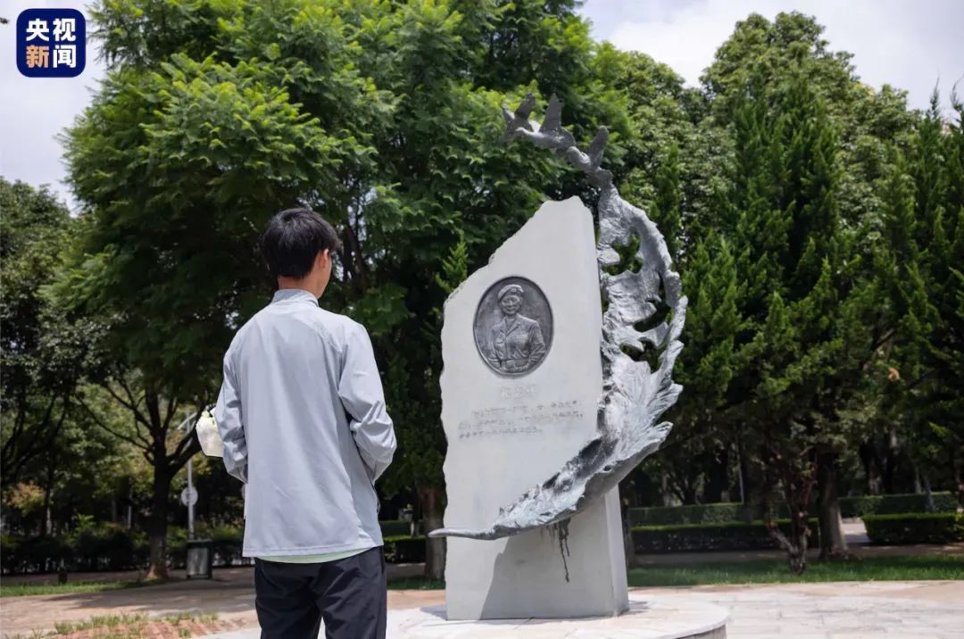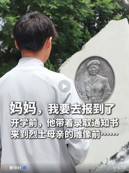 新华社 2024-08-25 开学前,他带着录取通知书来到烈士母亲的雕像前……