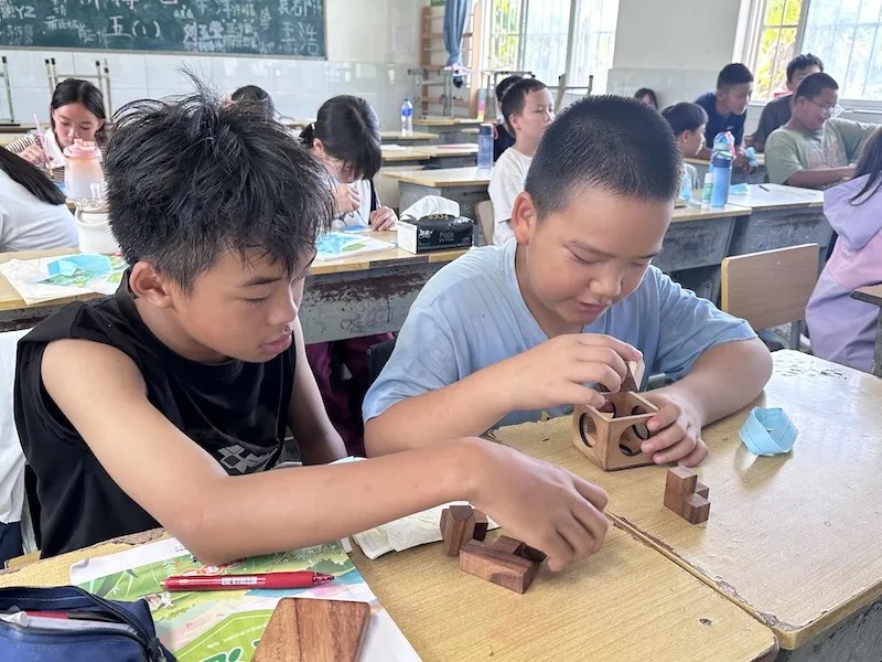 四个支教点准备了数十种数学模型让学生体验和学习,包括汉诺塔、九连环、七巧板、十四巧板、百鸟蛋、华容道、三元曲塔、索玛方块、鲁班锁、五子棋、象棋、飞行棋以及魔方,并传授学生破解之法。