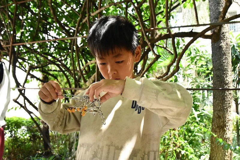 手工制作课程:“小朋友的名牌”“积木狂想曲”、手工纸盘、漆扇、手工衣服、户外DIY风筝制作、“框住我心中的大自然”手工粘土、非遗剪纸、中国结等,最能引发孩子们动手和创造的兴趣。