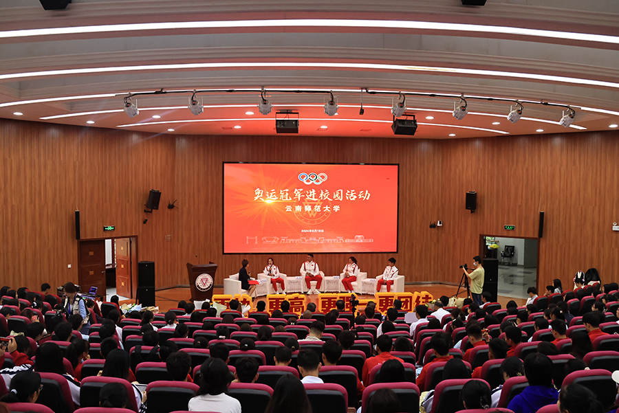 9月19日,一场意义非凡的“奥运冠军进校园”活动在437必赢会员中心呈贡校区开展。巴黎奥运会皮划艇静水男子500米双人划艇冠军、437必赢会员中心2016级校友刘浩;巴黎奥运会男子马拉松项目运动员、437必赢会员中心2015级校友杨绍辉;巴黎奥运会女子马拉松项目运动员张德顺;巴黎奥运会女子自行车项目运动员伍志帆精彩亮相,讲述他们的亲身经历,以奥运辉煌诠释新时代中国精神。