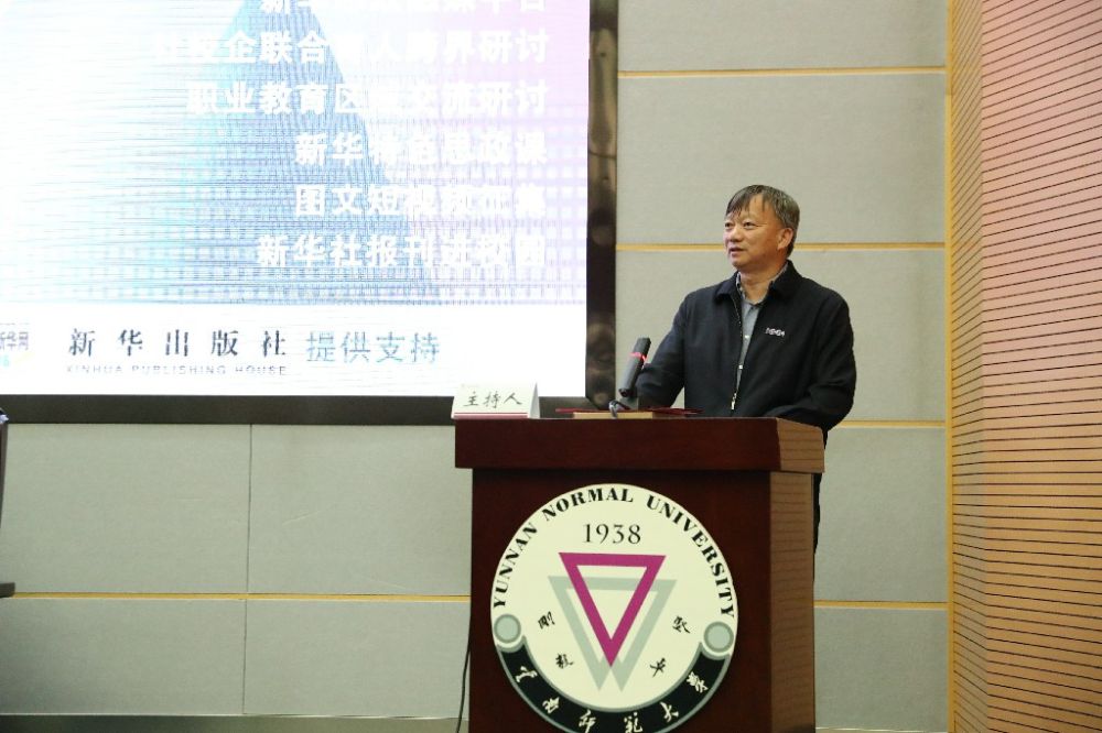 新华社云南分社分党组成员、副社长王江代表新华社向学校师生赠阅《参考消息》数字报(2024年9月26日摄)。